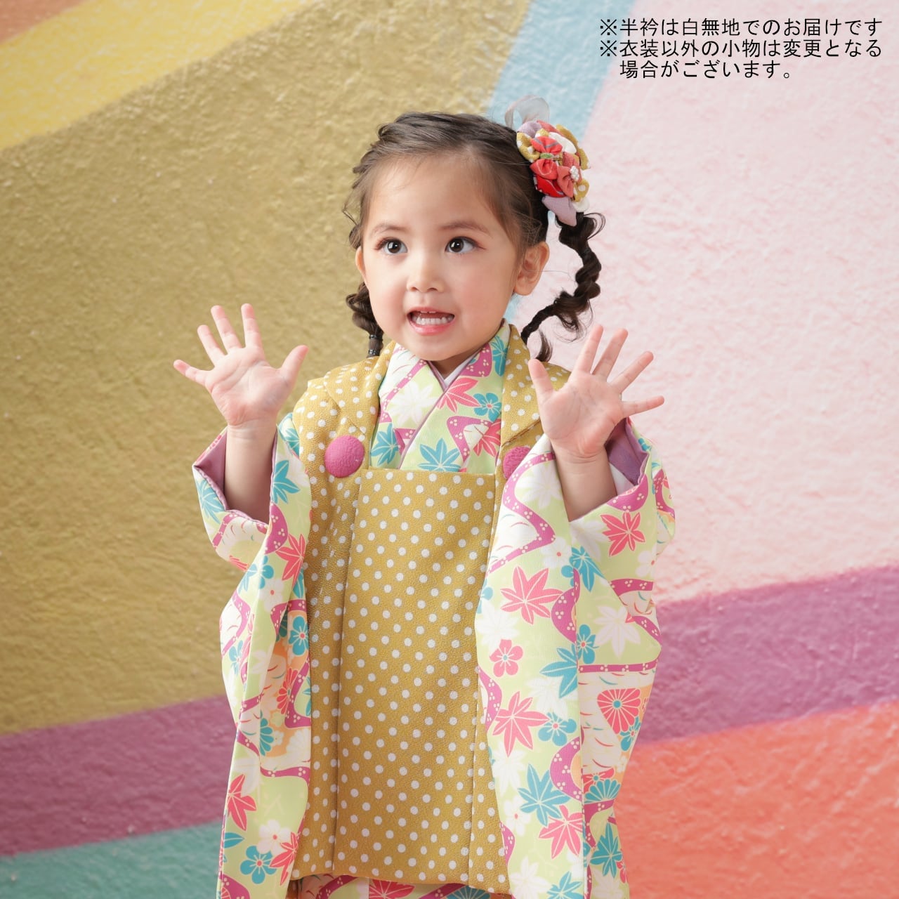 【レンタル】七五三着物 2歳-小柄3歳 女の子 オリジナル 白 黄色 【V95(27939)】