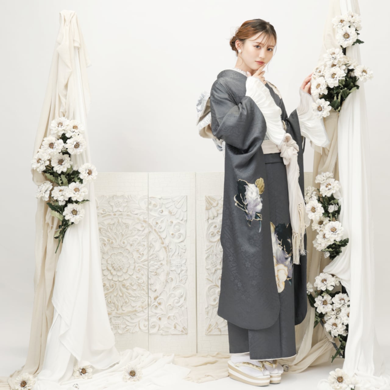 【レンタル】【ご成約済】☆2026年1月成人式☆振袖 結納 結婚式 玉城ティナ×紅一点 グレー 【F2378(19821)】