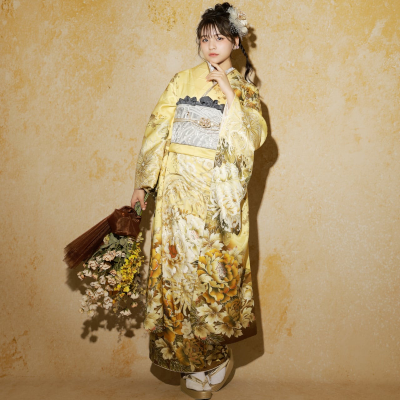 【レンタル】【ご予約受付中】☆2026年1月成人式☆振袖 結納 結婚式 華徒然×吉木千沙都 黄色 【F3028(27460)】