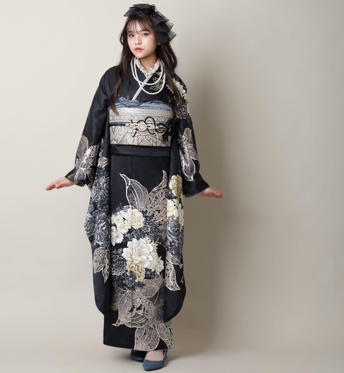 【レンタル】【ご予約受付中】☆2026年1月成人式☆振袖 結納 結婚式 ラフィネモカ 黒 【F3080(28077)】