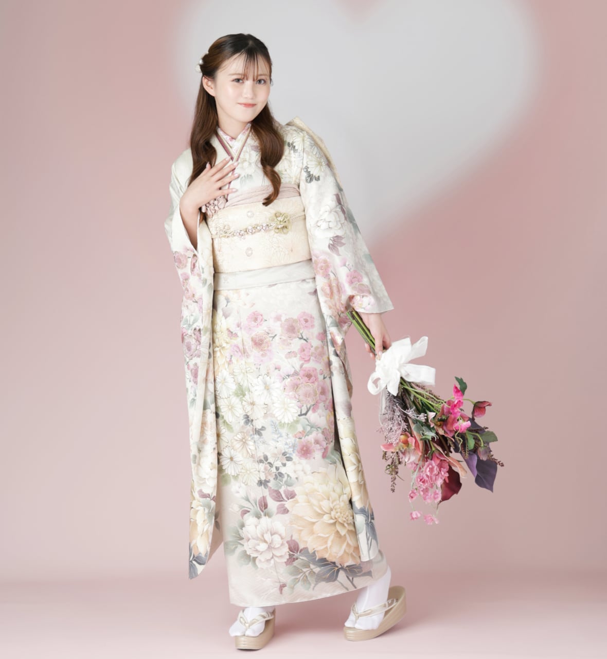 絶妙なホワイトグレーの振袖がトレンド感あふれる♪