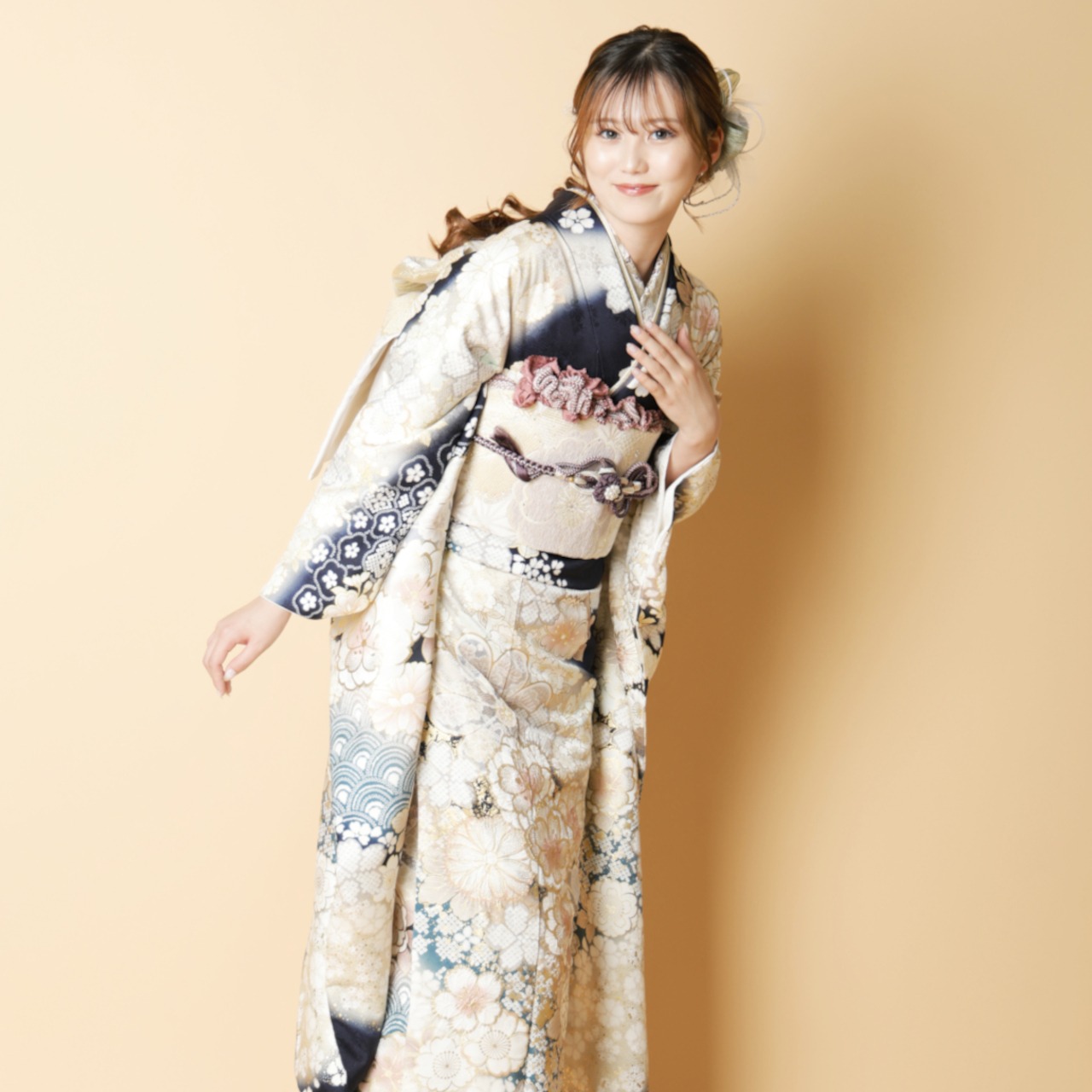【レンタル】☆2月-11月使用専用☆ 振袖 結納 十日町振袖 紺 【F3104(28127)】
