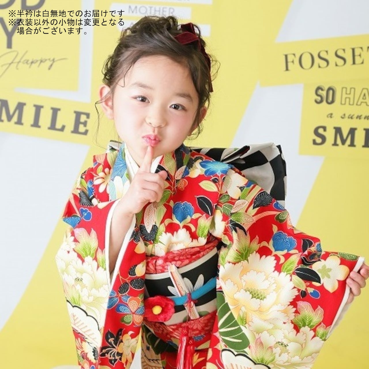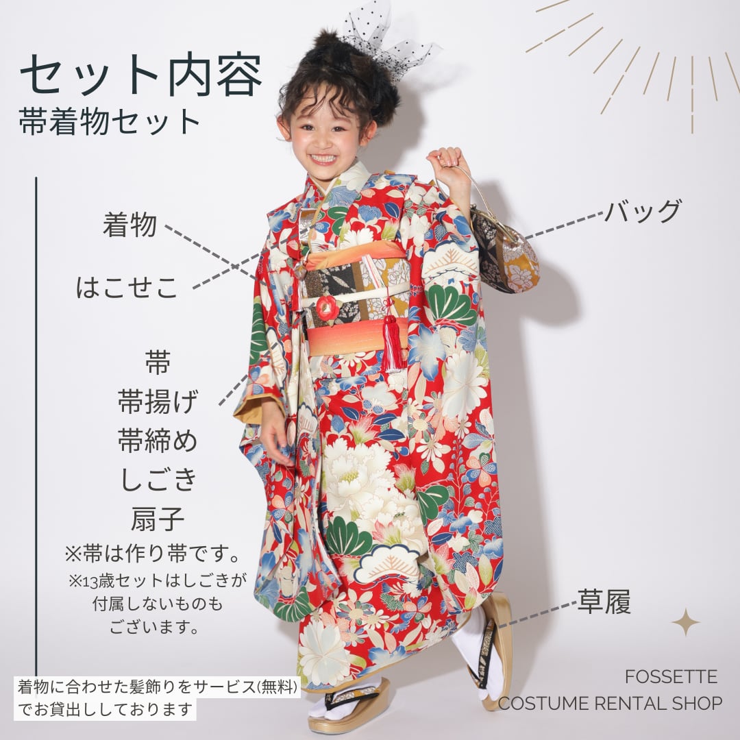 【レンタル】七五三着物 5歳-小柄7歳 女の子 オリジナル 赤 【I117-B296(17863-17876)】