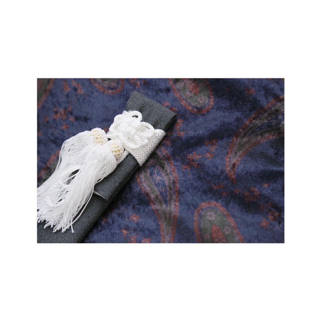 落ち着いた雰囲気の中にもベロア素材やペイズリー柄を取り入れて、現代的そして、勇ましく粋な男らしさをイメージしたお着物です。