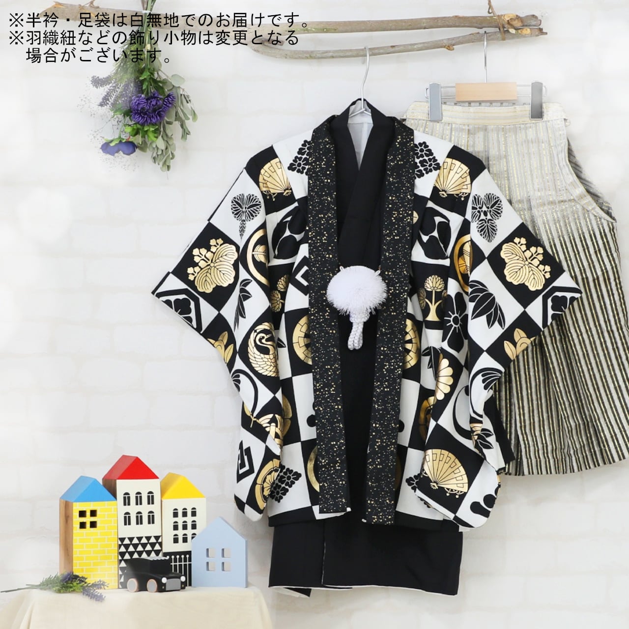 【レンタル】七五三着物 5歳 男の子 白 黒 【G176-E172(18382-18383)】