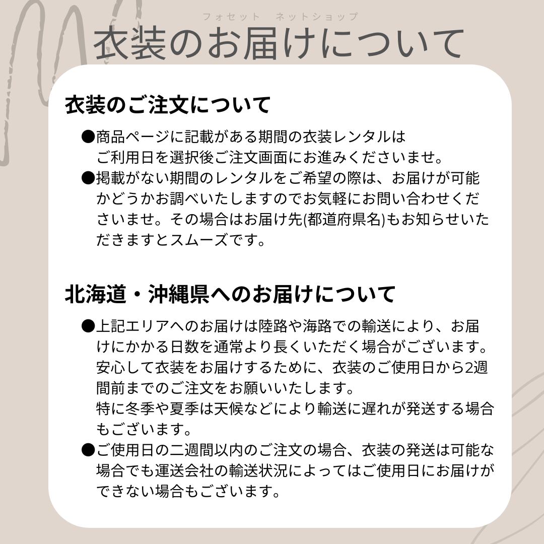 ご注文時期・お届け先によっては衣装の配送に5日ほどいただく場合がございます。