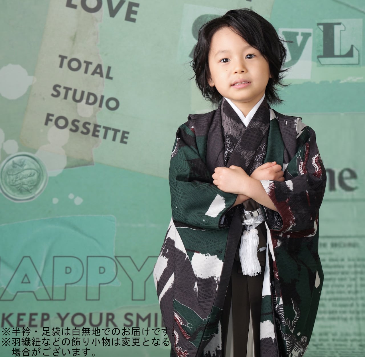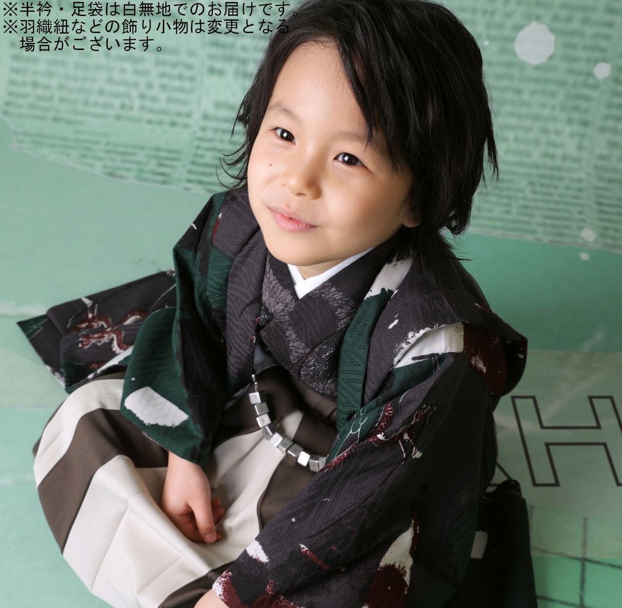 【レンタル】七五三着物 5歳 男の子 モダンアンテナ 緑 【G182-E180(23071-23068)】
