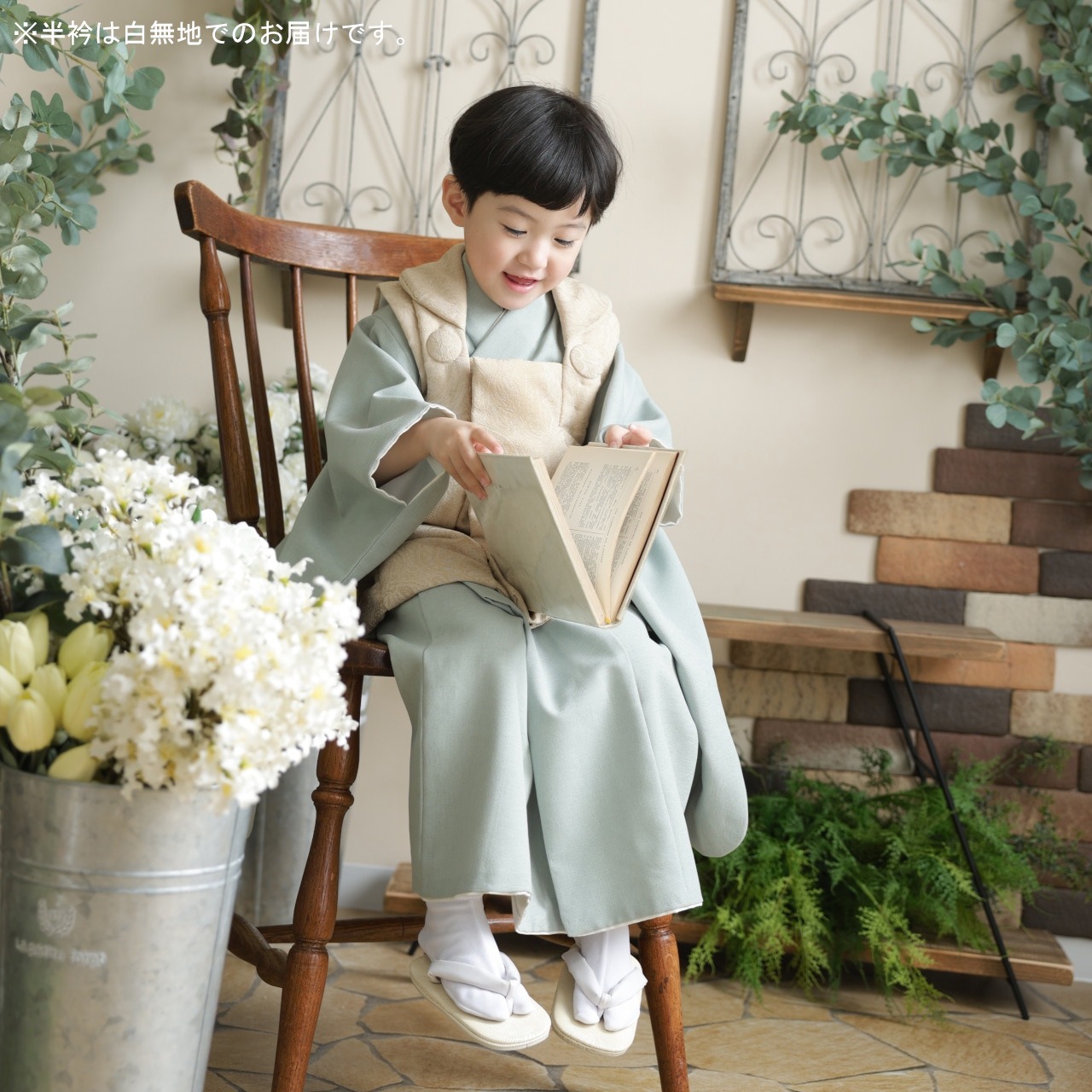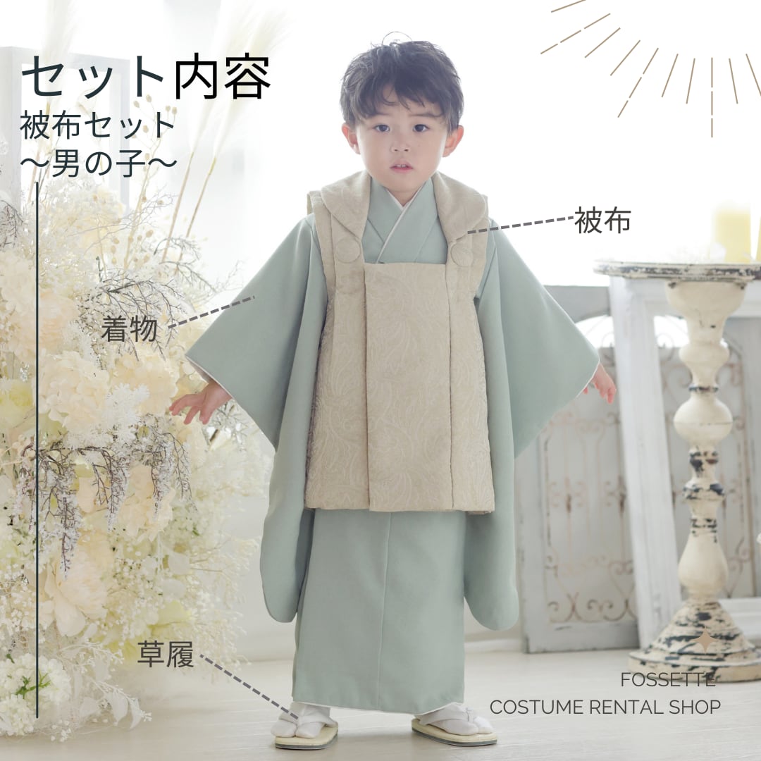 【レンタル】七五三着物 3歳 男の子 オリジナル 被布着物タイプ 水色 ミント 【S158(21701)】