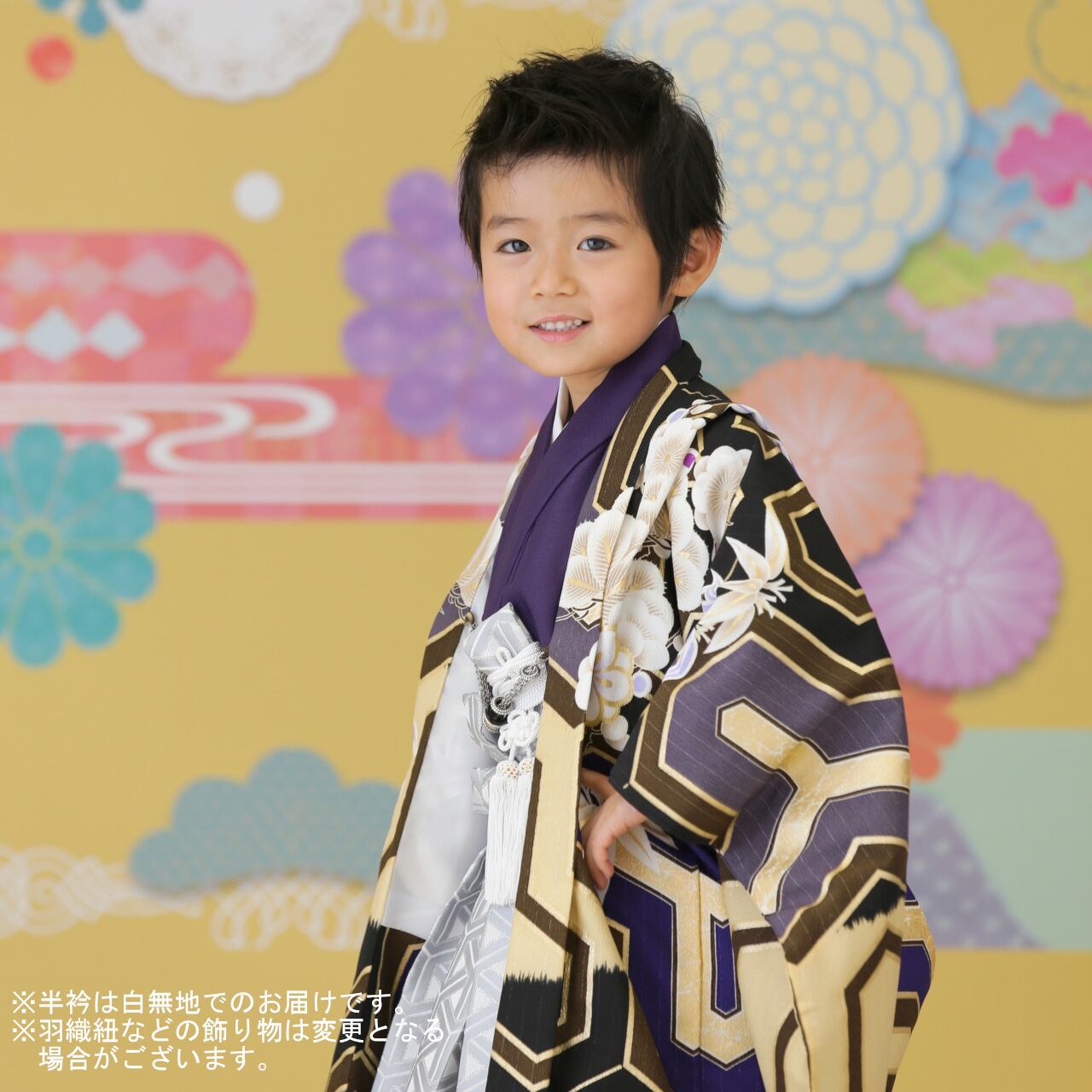 【レンタル】七五三着物 5歳 男の子 JAPANSTYLE 黄色 紫 【G138-E108(8373-8050)】