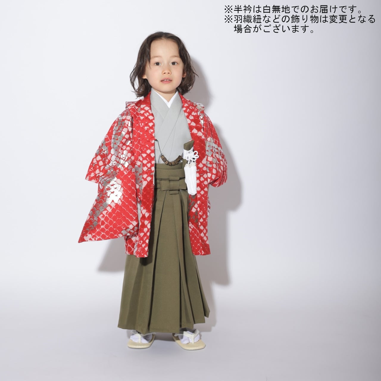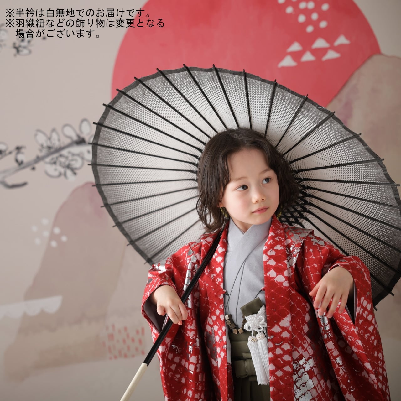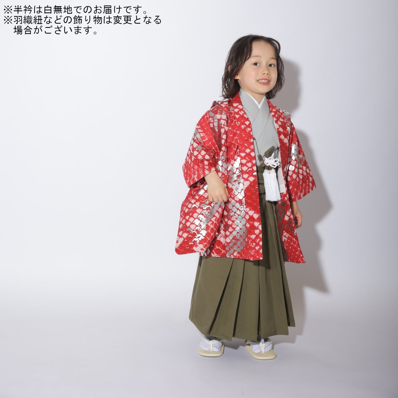 赤×シルバーのかっこいい羽織袴です♪