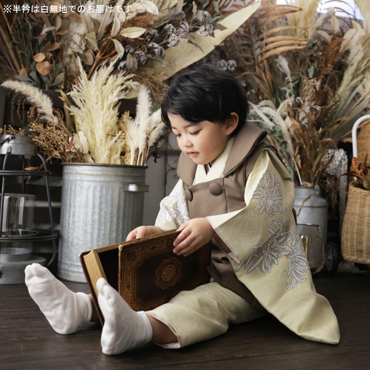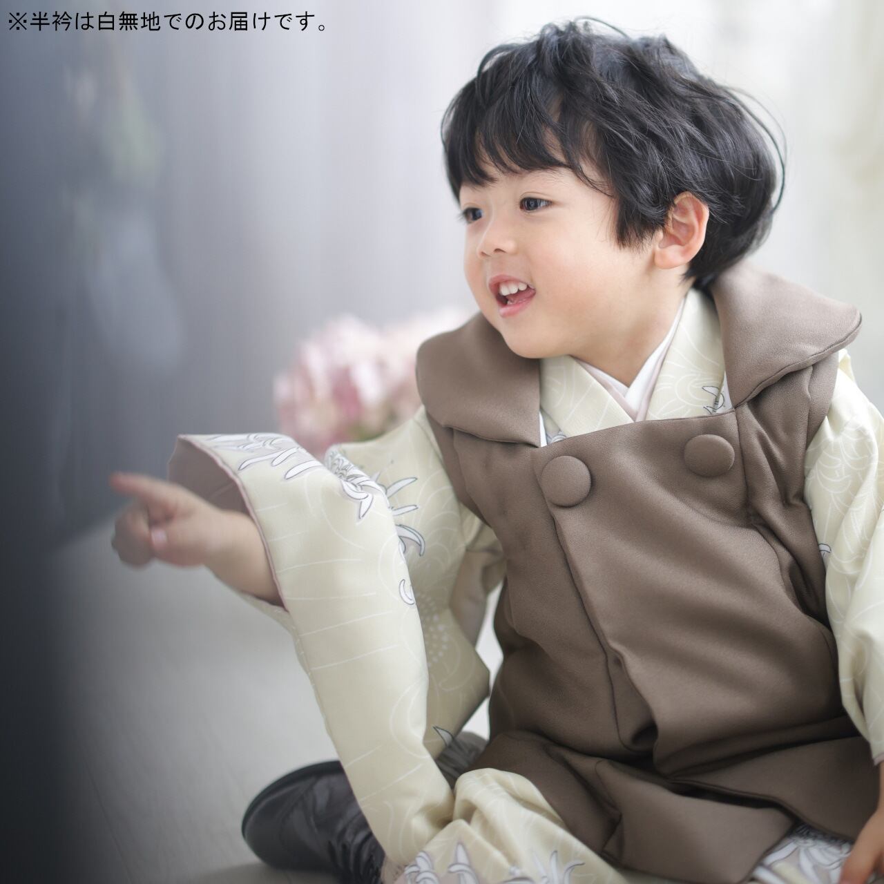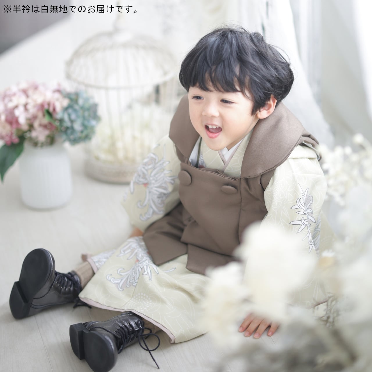 【レンタル】七五三着物 3歳 男の子 オリジナル ベージュ 【S175(23952)】