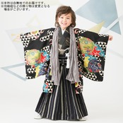 【レンタル】七五三着物 5歳 男の子 モダンアンテナ 黒 【G161-E155(9715-9691、9714-9690)】
