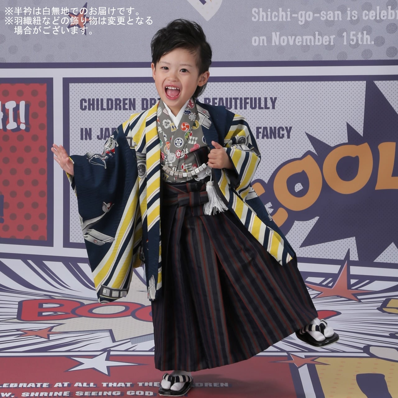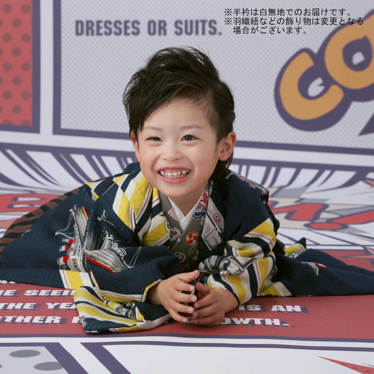 【レンタル】七五三着物 3歳 男の子 モダンアンテナ 青 黄色 【S141-D308(10698-10516)】