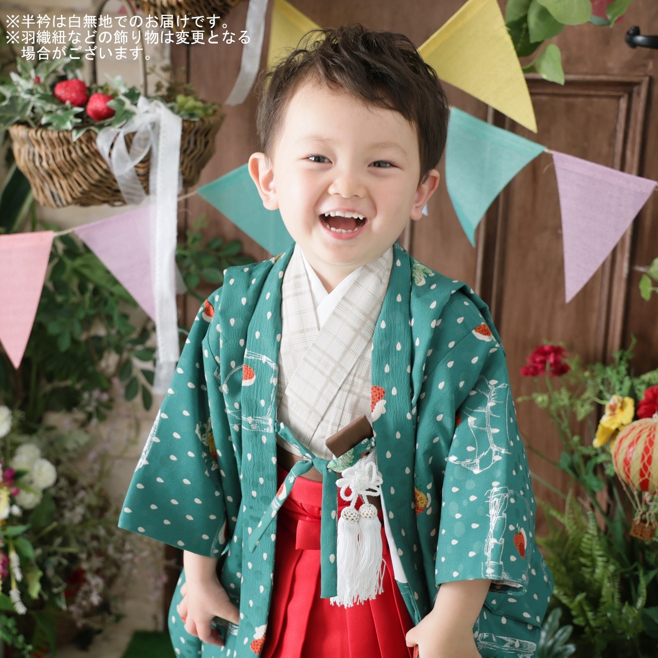 【レンタル】七五三着物 3歳 男の子 オリジナル 緑 【S152-D324(19324-19285)】