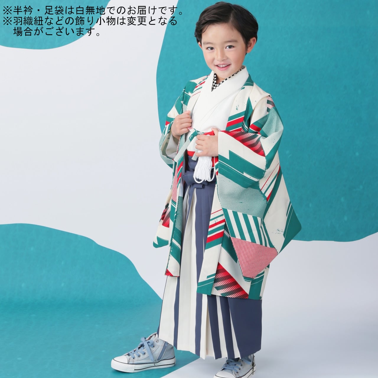 【レンタル】七五三着物 5歳 男の子 オリジナル 白 緑 【G174-E170(17877-17838)】
