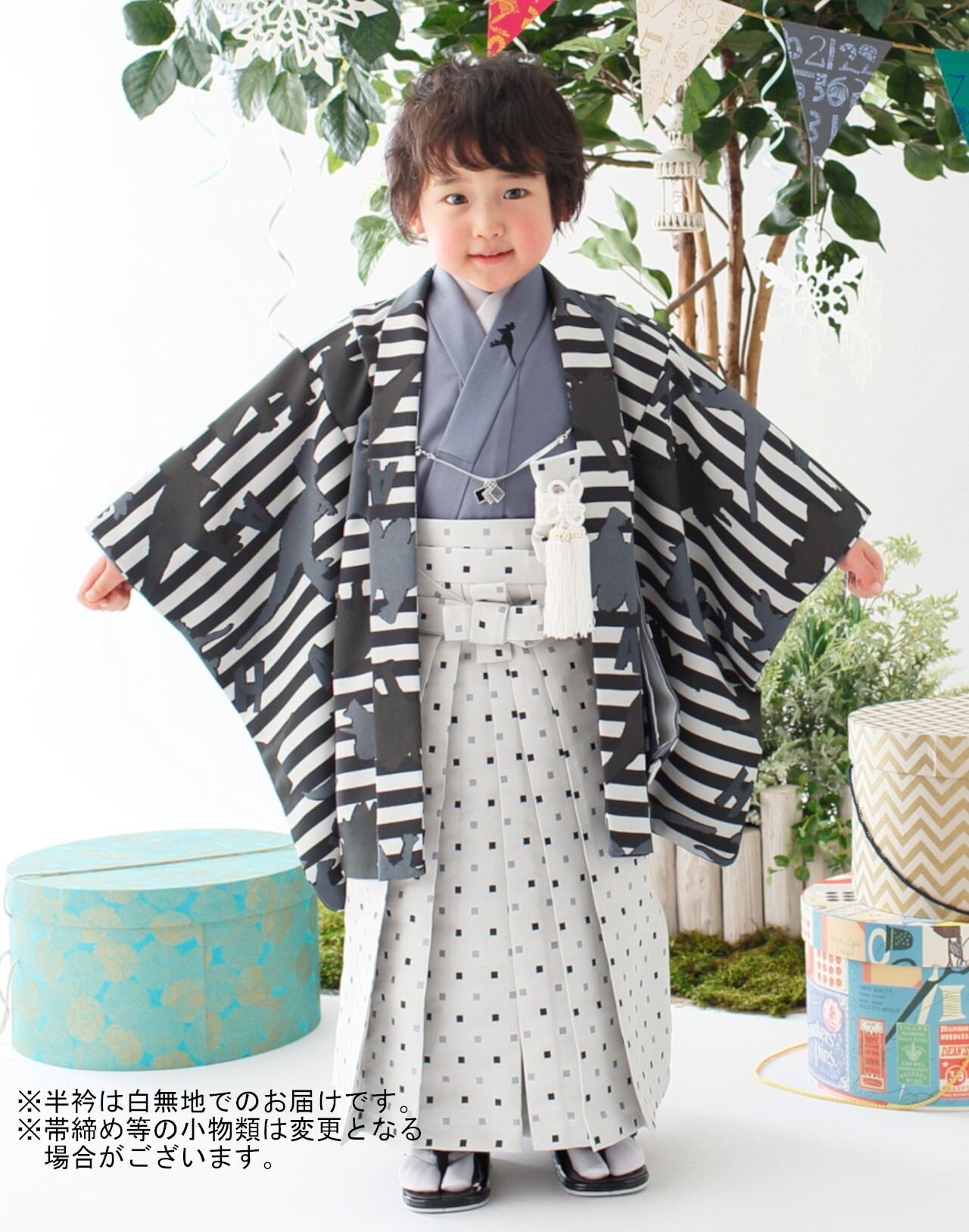 【レンタル】七五三着物 3歳 男の子 ハッカキッズ グレー 【S47-D102(3580-5138)】