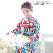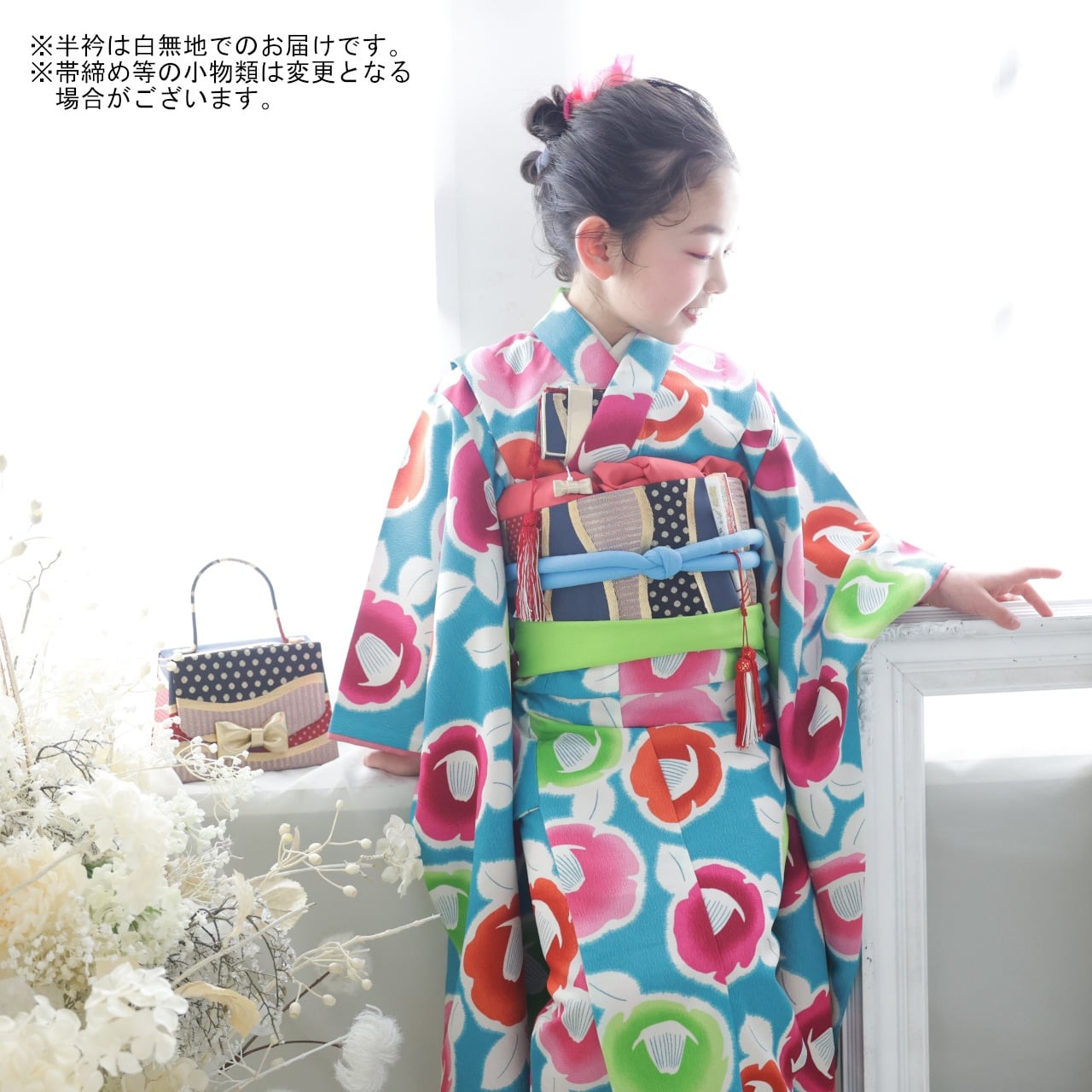 鮮やかなブルーにビビットな色のお花が可愛いフォセットオリジナルの着物☆