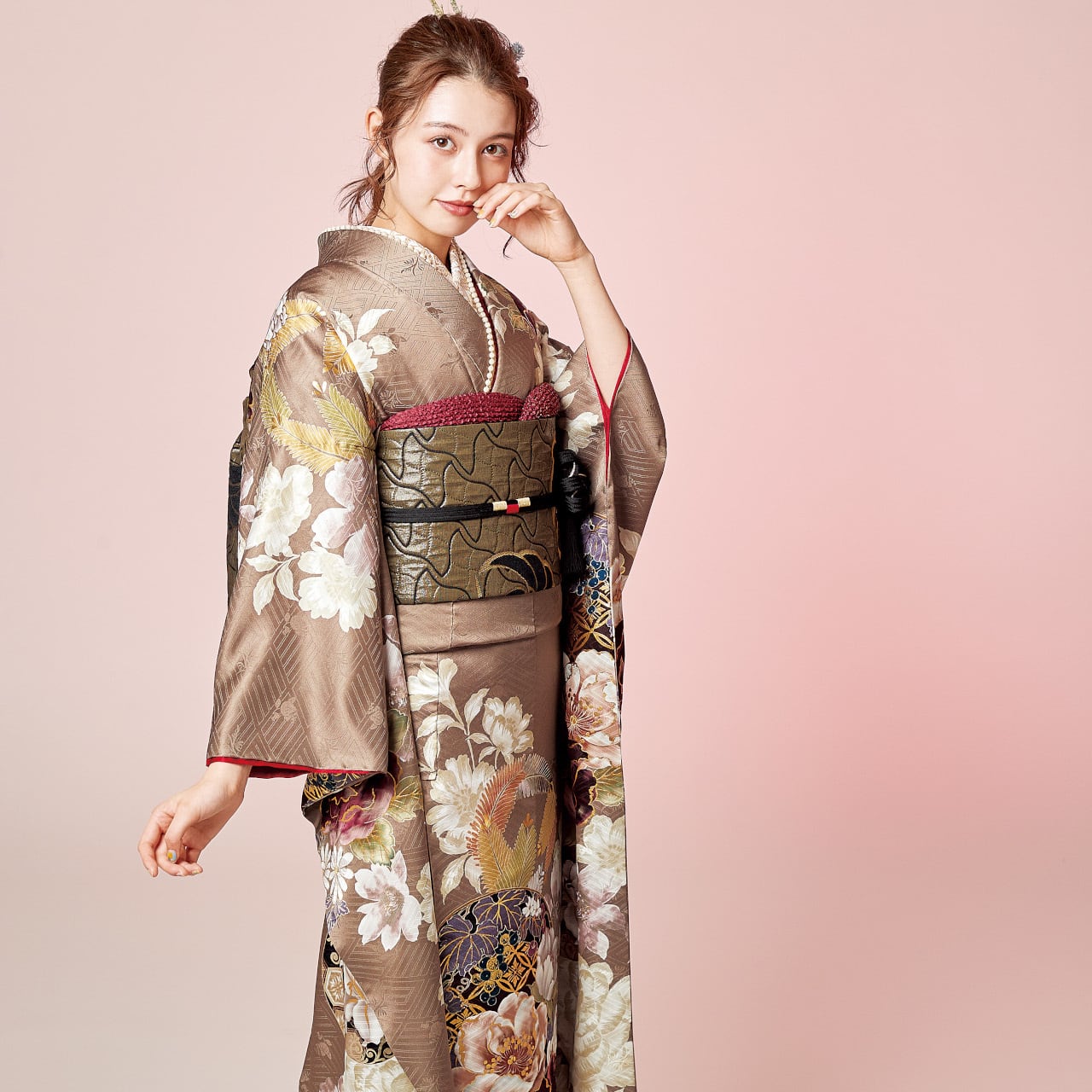 【レンタル】☆2月-11月使用専用☆ 振袖 結納 結婚式 SACRA 茶色 ベージュ 【F2849(24763)】